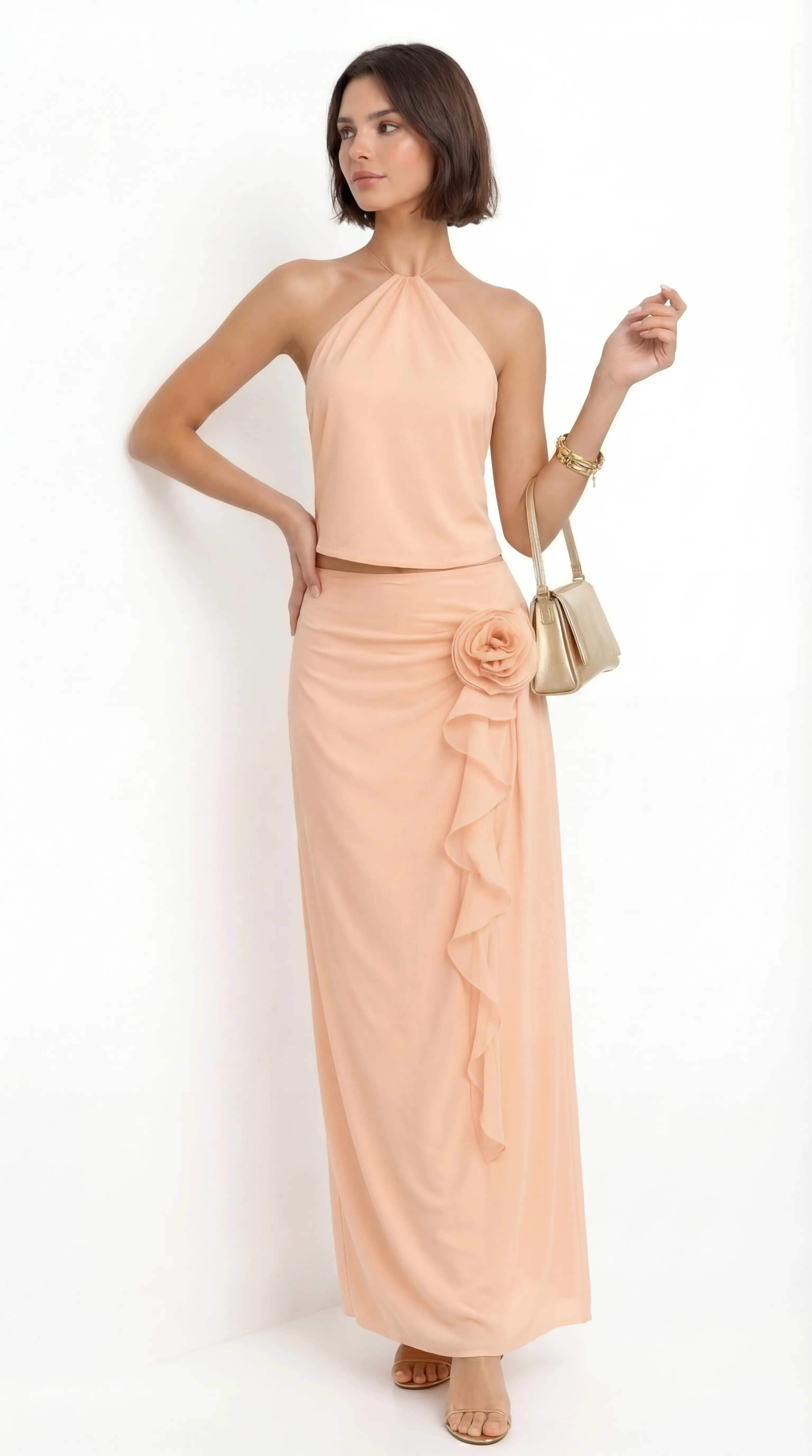 APRICOT SORBET HALTER ENSEMBLE – PREMIUM SILK TƠ | MUS583