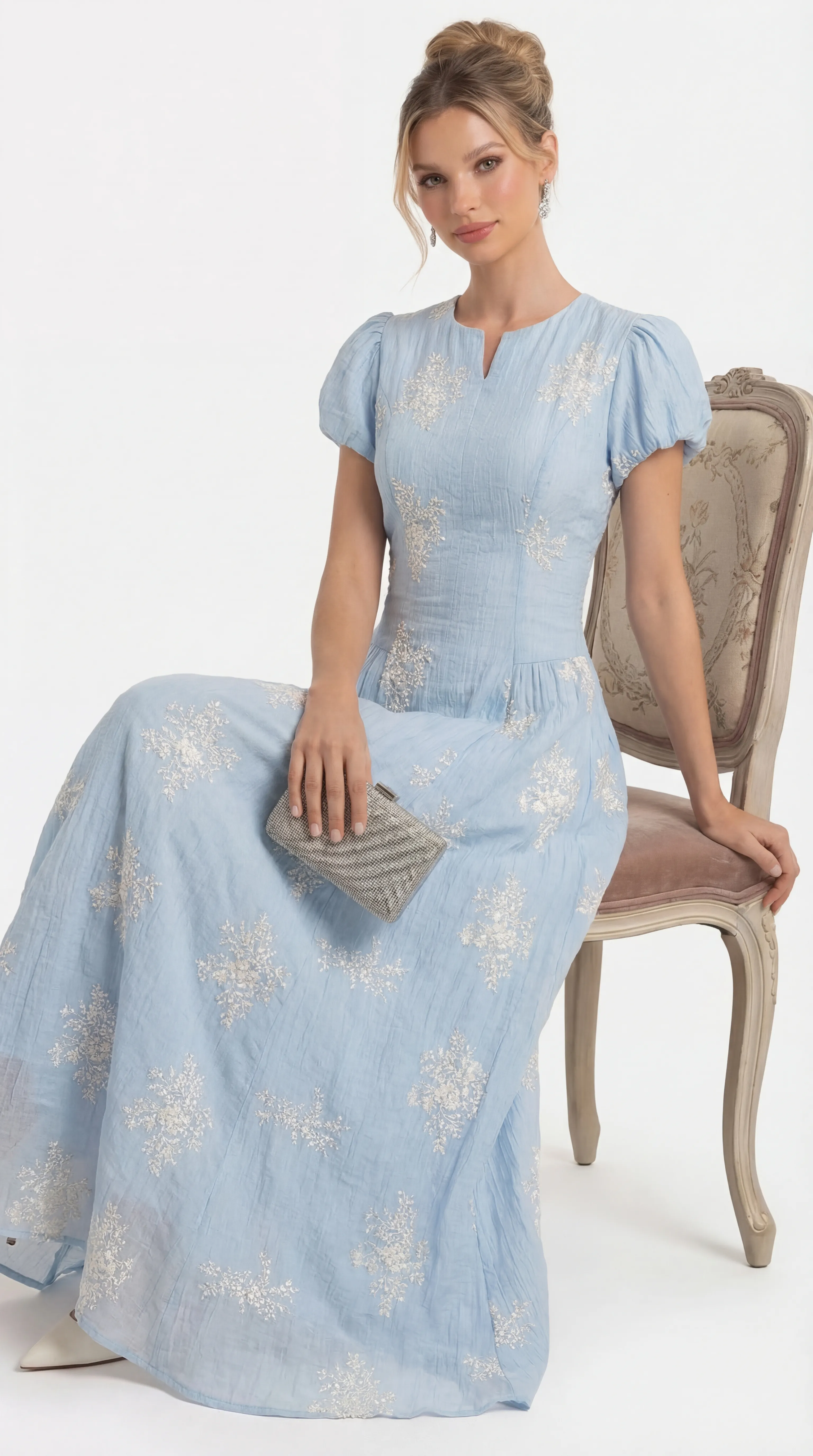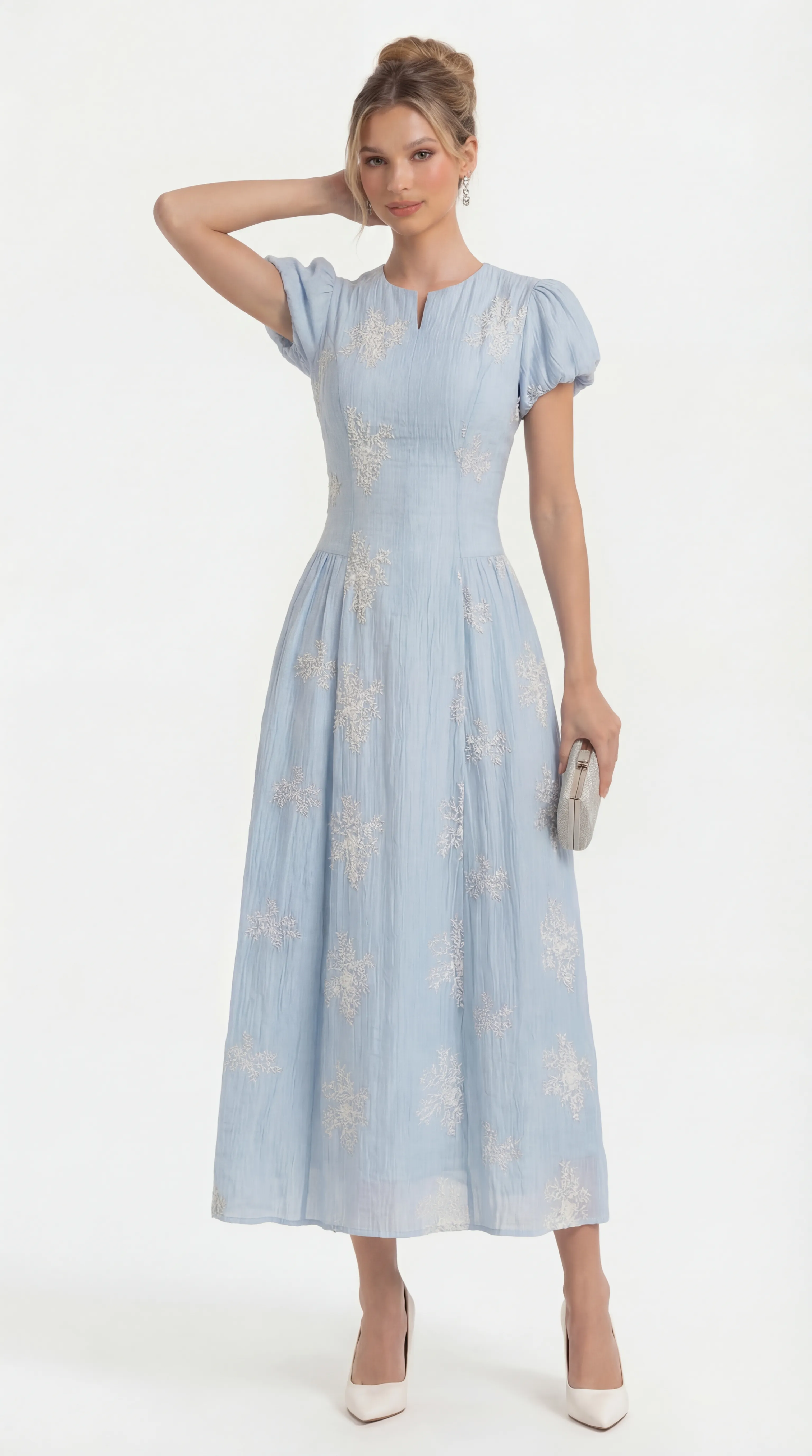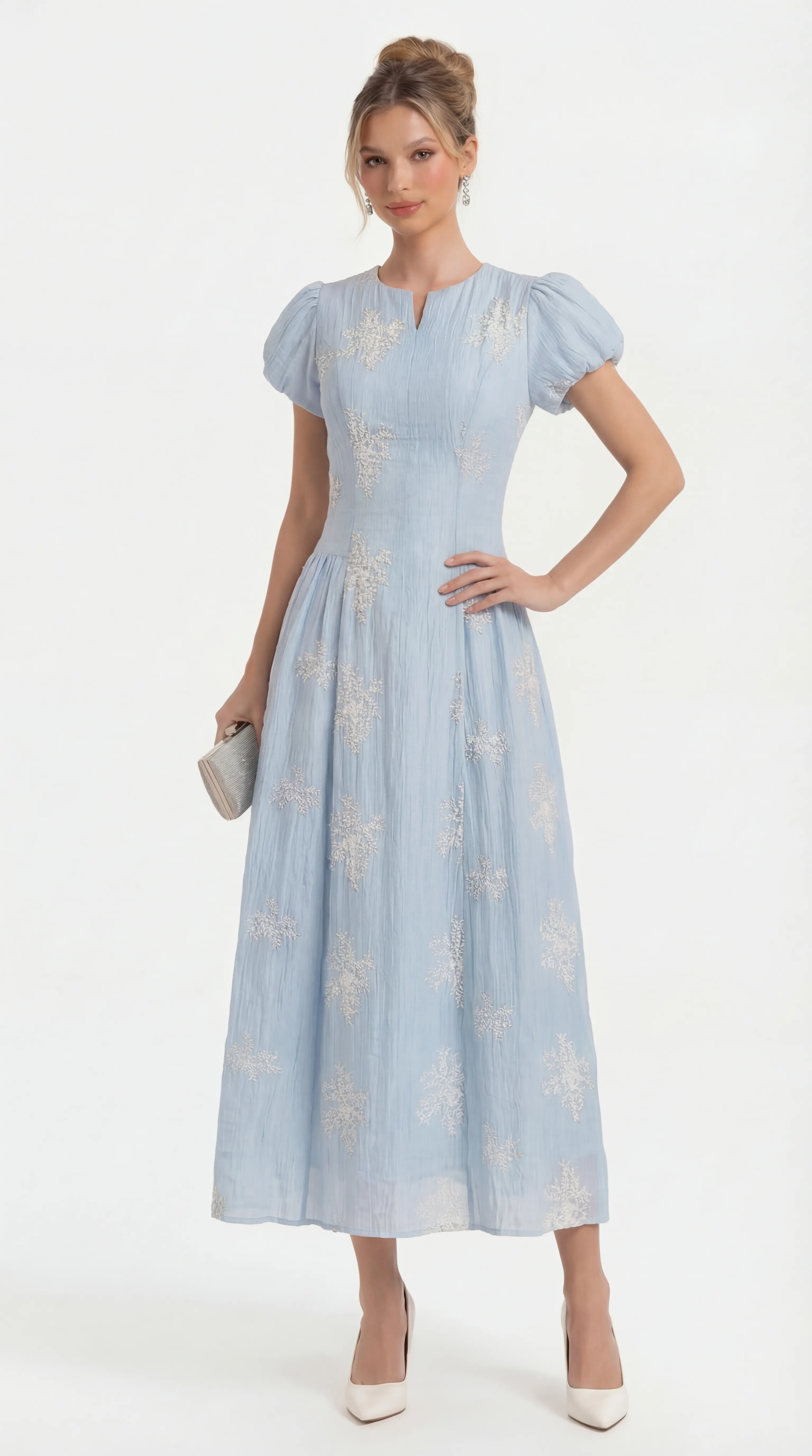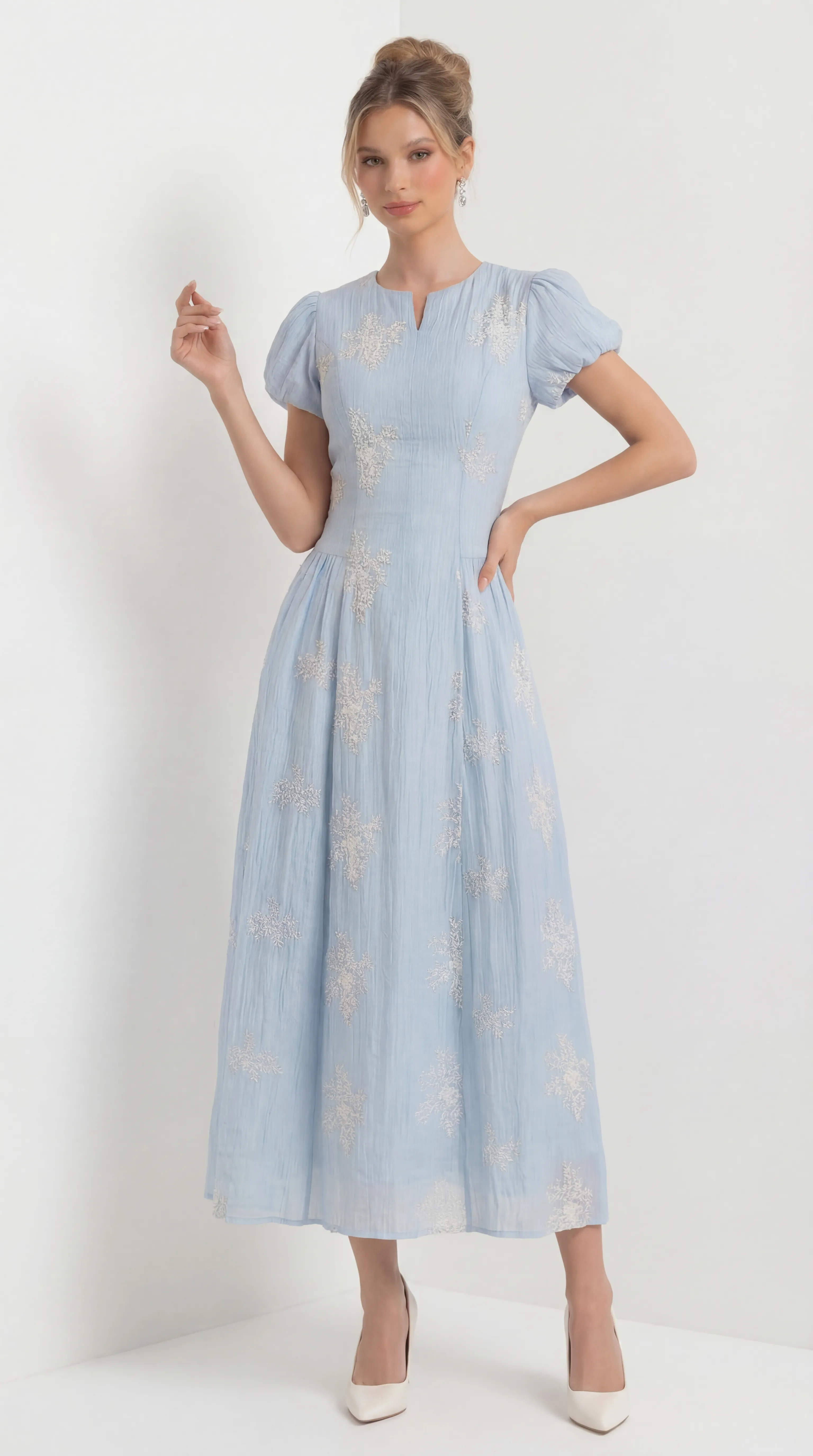 AZURE BLOSSOM EMBROIDERED MIDI – ETHEREAL SILK EDIT | MDU4735