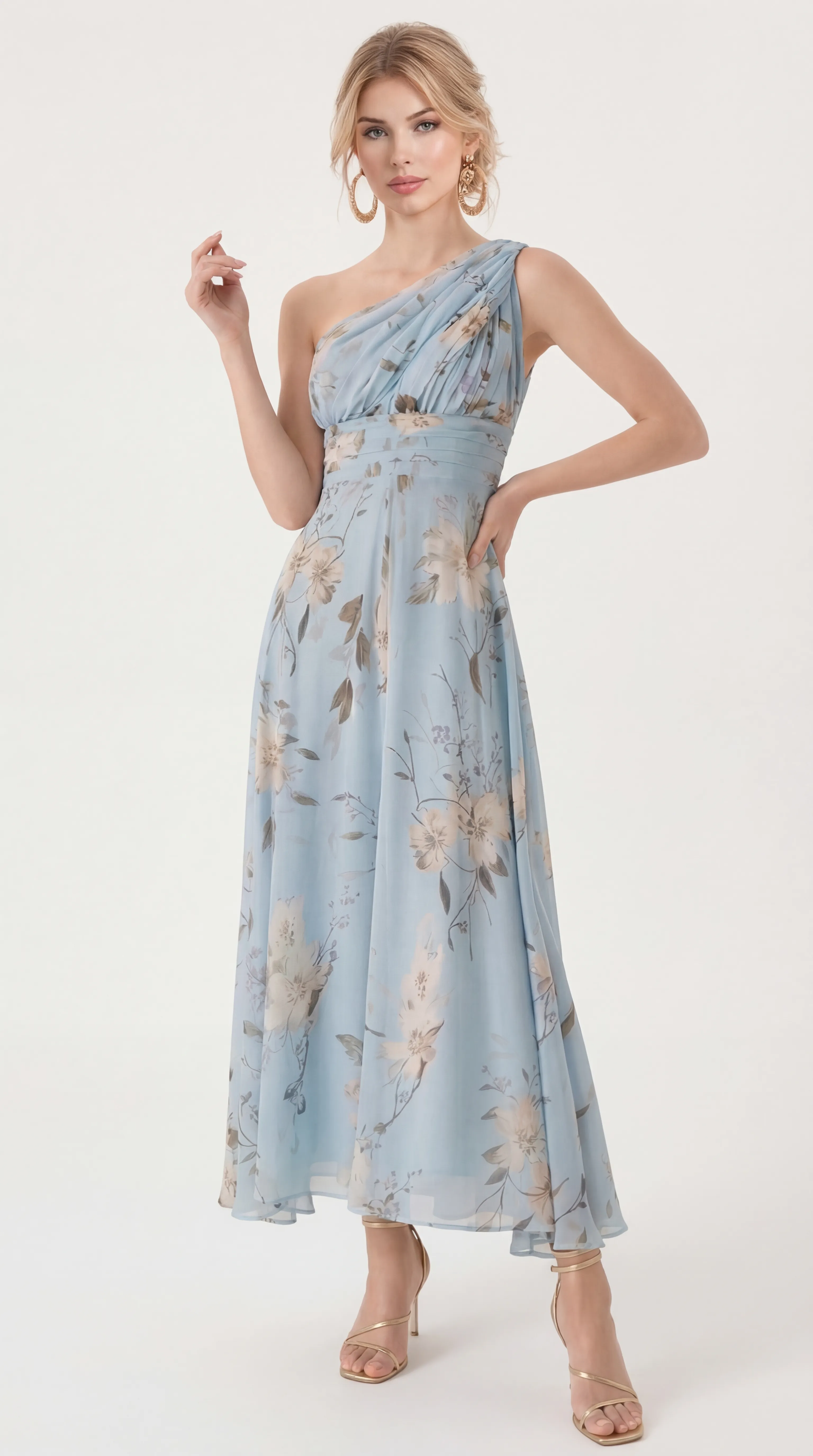 AZURE BLOSSOM ONE-SHOULDER GOWN – PREMIUM SILK TƠ | MUS558