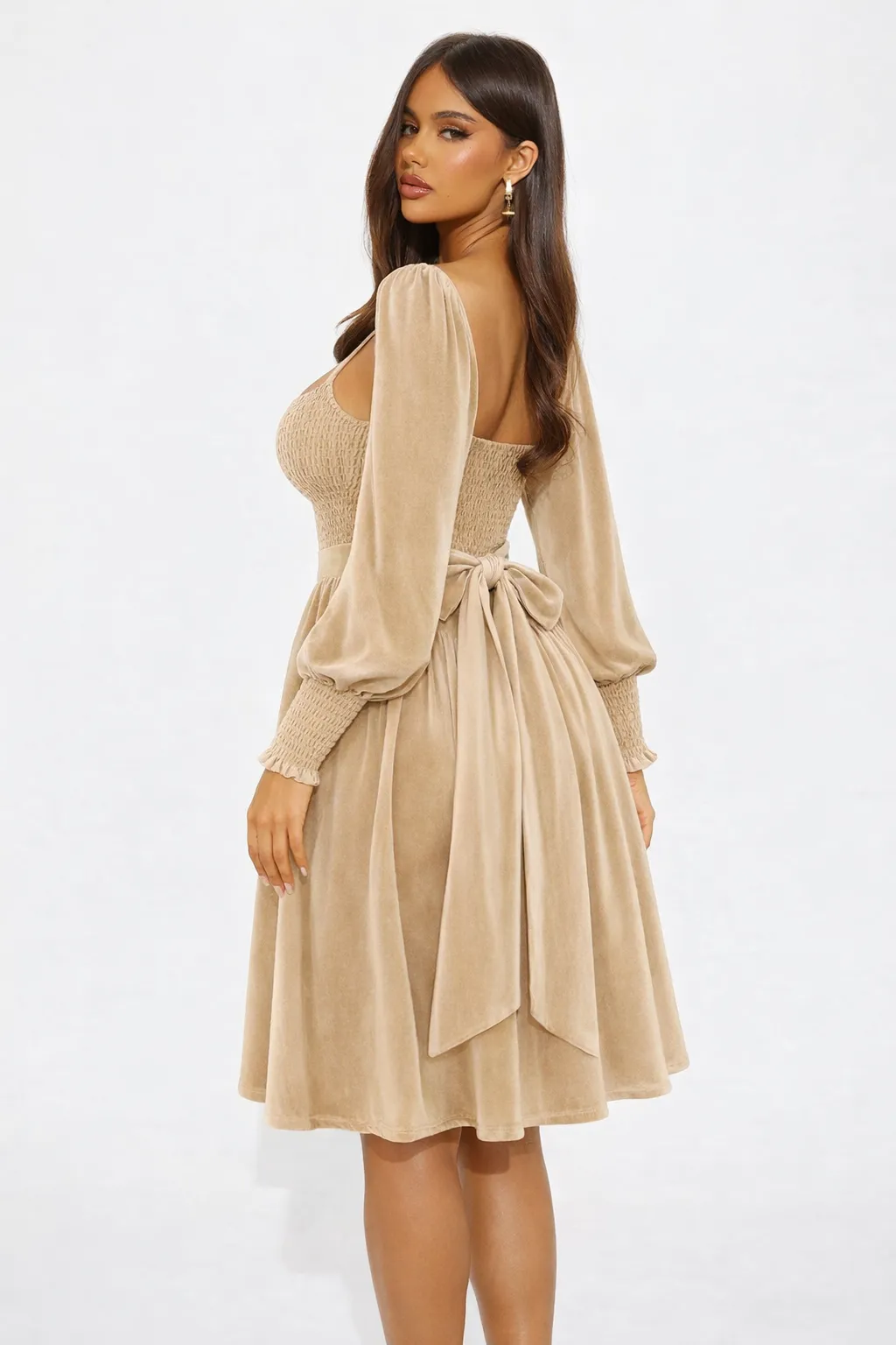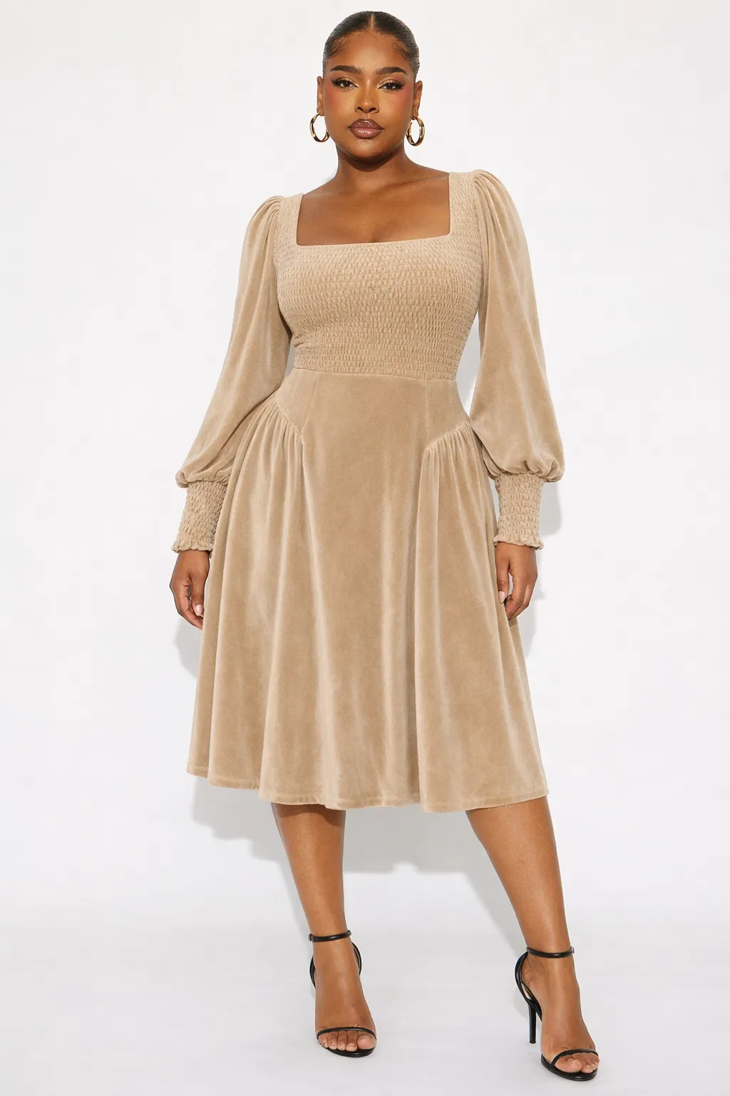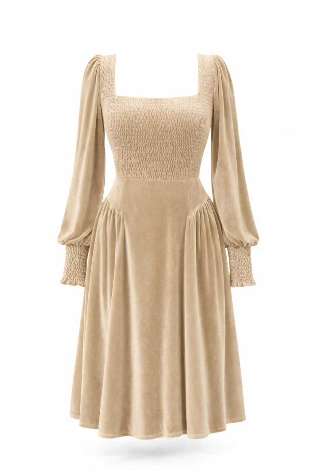 ELEGANT SMOCKED VELVET MIDI – TIMELESS GRACE | MDU346US