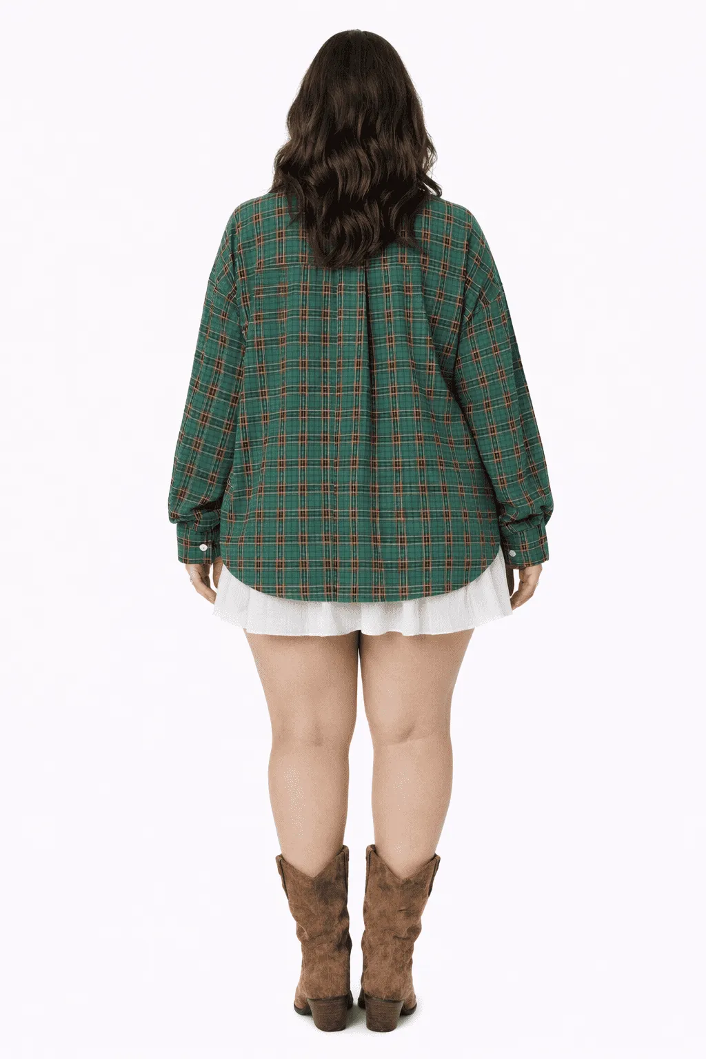 Pattern & Color: Features a sophisticated green and rust-brown tartan plaid, offering a warm and grounded take on seasonal festive attire.