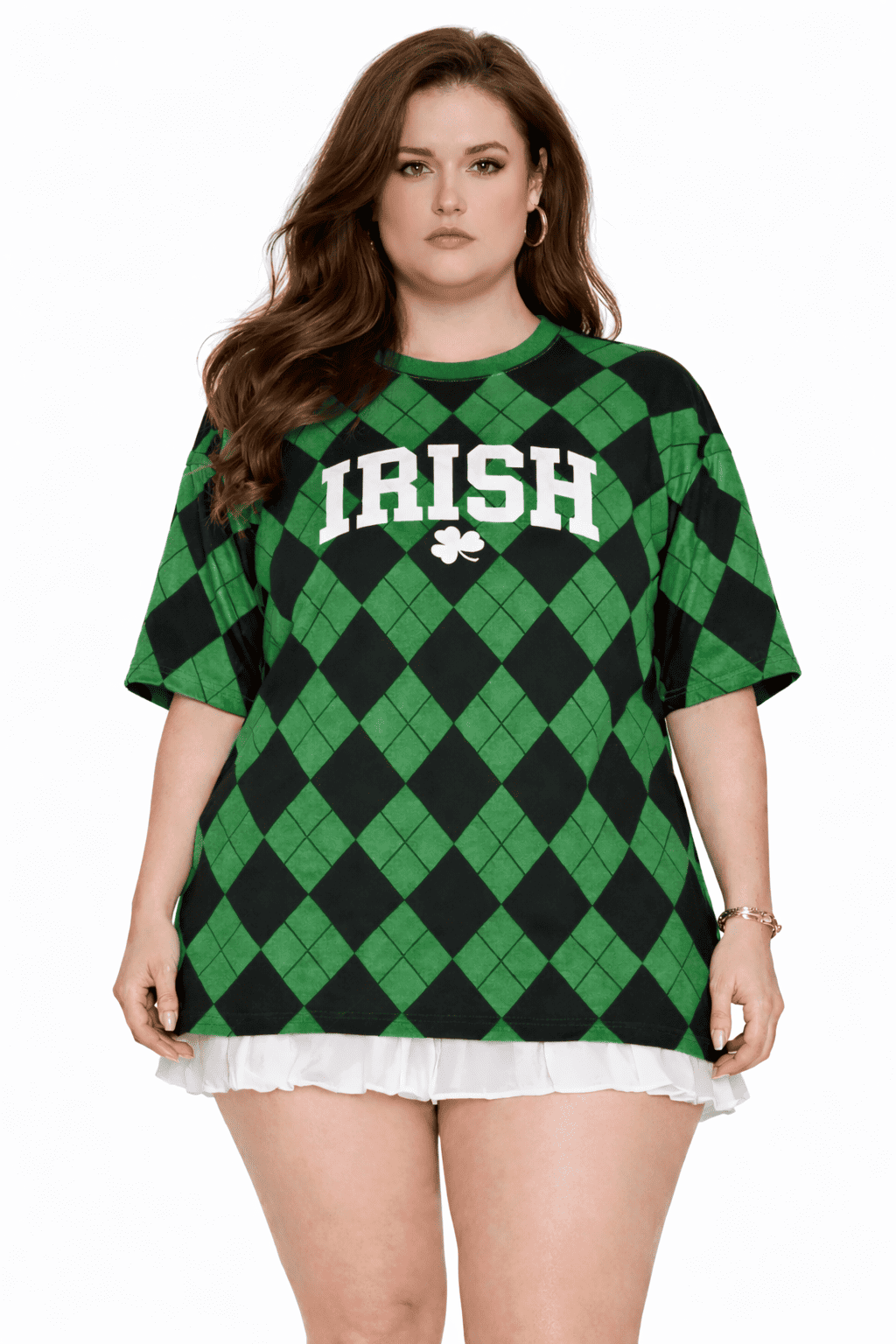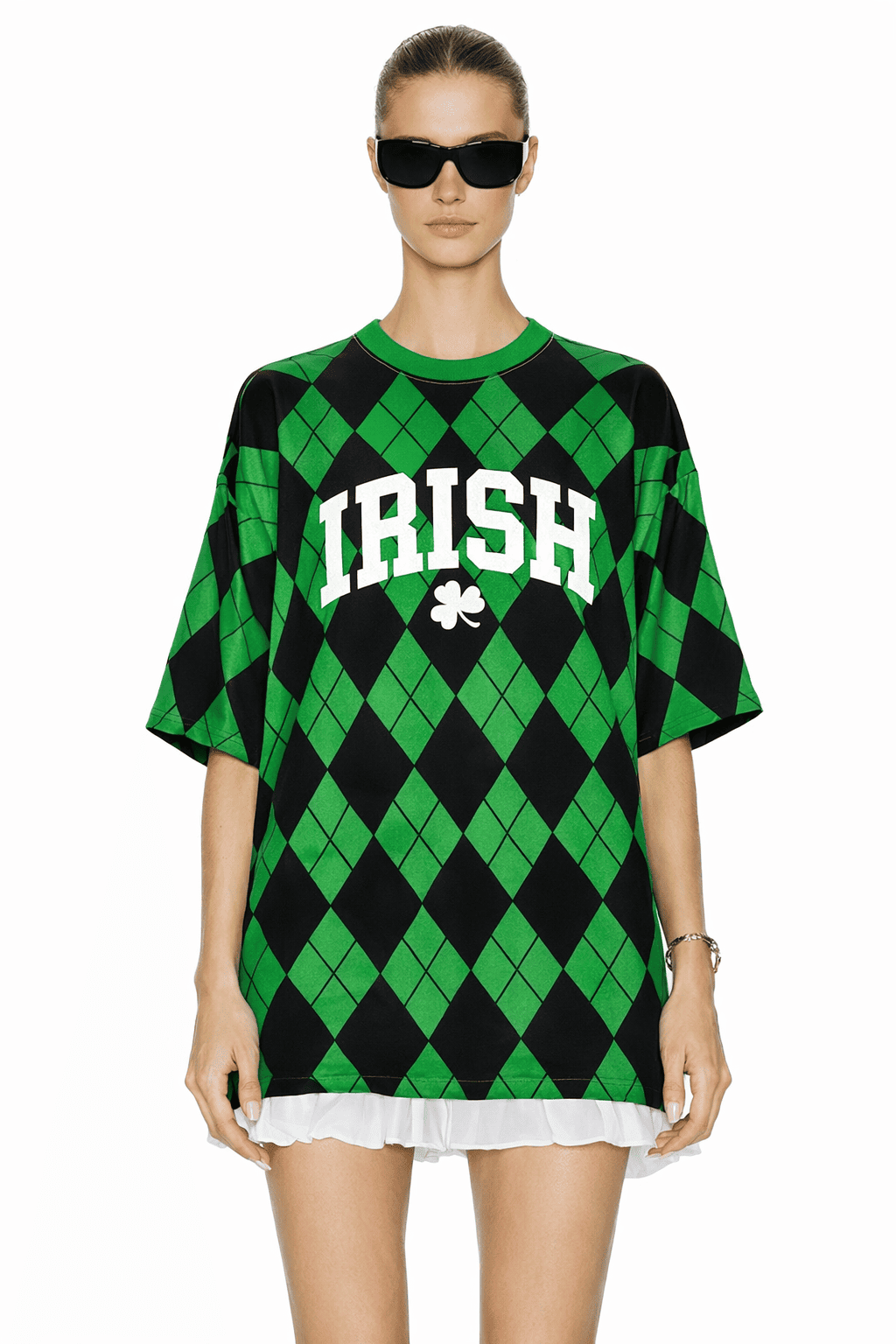 IRISH ARGYLE OVERSIZE TEE – FESTIVE PREPPY STYLE | MDU397US