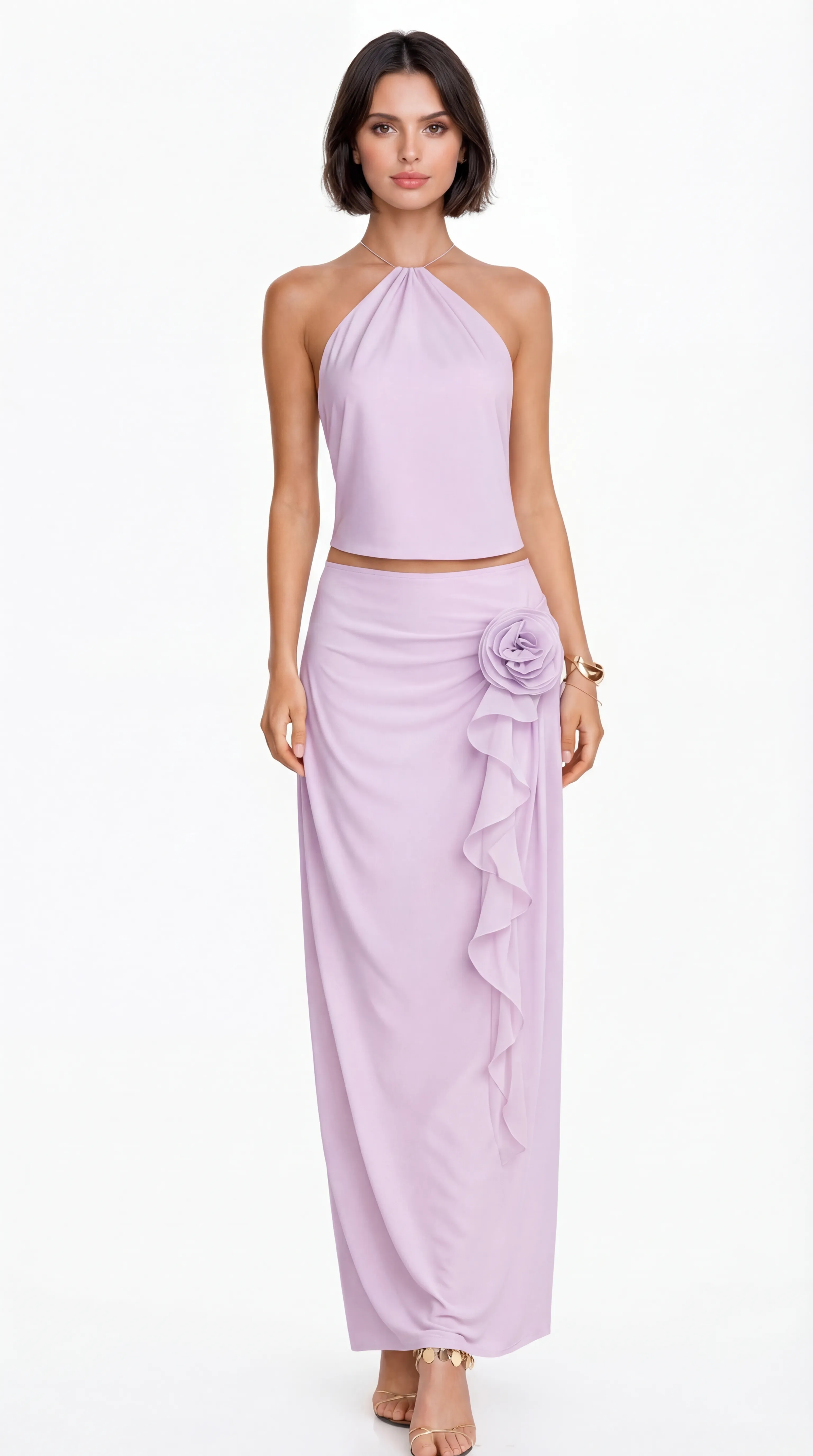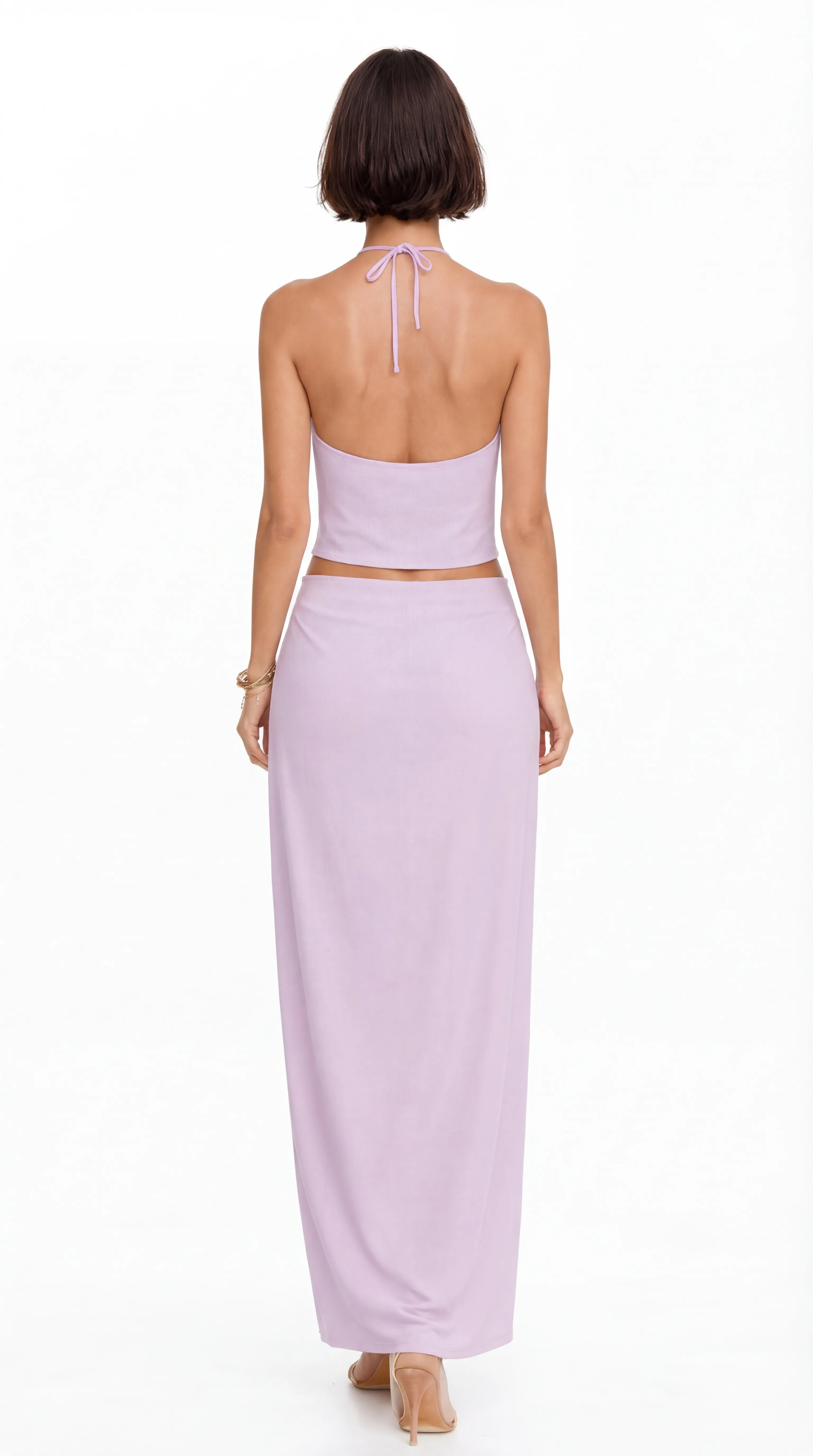 LAVENDER MIST HALTER ENSEMBLE – PREMIUM SILK TƠ | MUS575