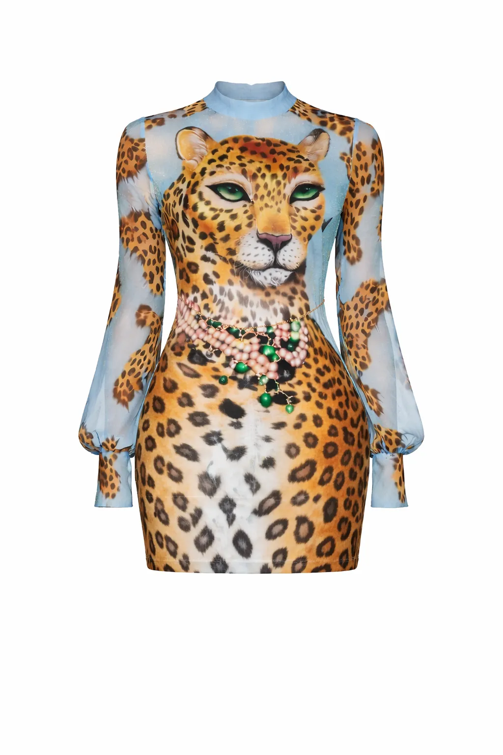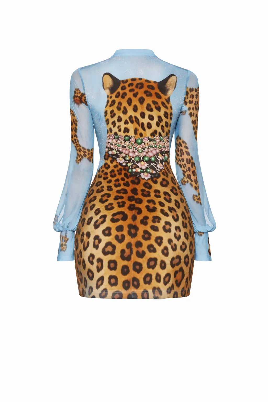 The MDU365US is a luxe double-layered dress defined by its shimmering inner lining and high-definition leopard mesh exterior. With its comfortable stretch and romantic puff-sleeve detail, it offers a high-impact, modern look perfect for evenings out or special events.