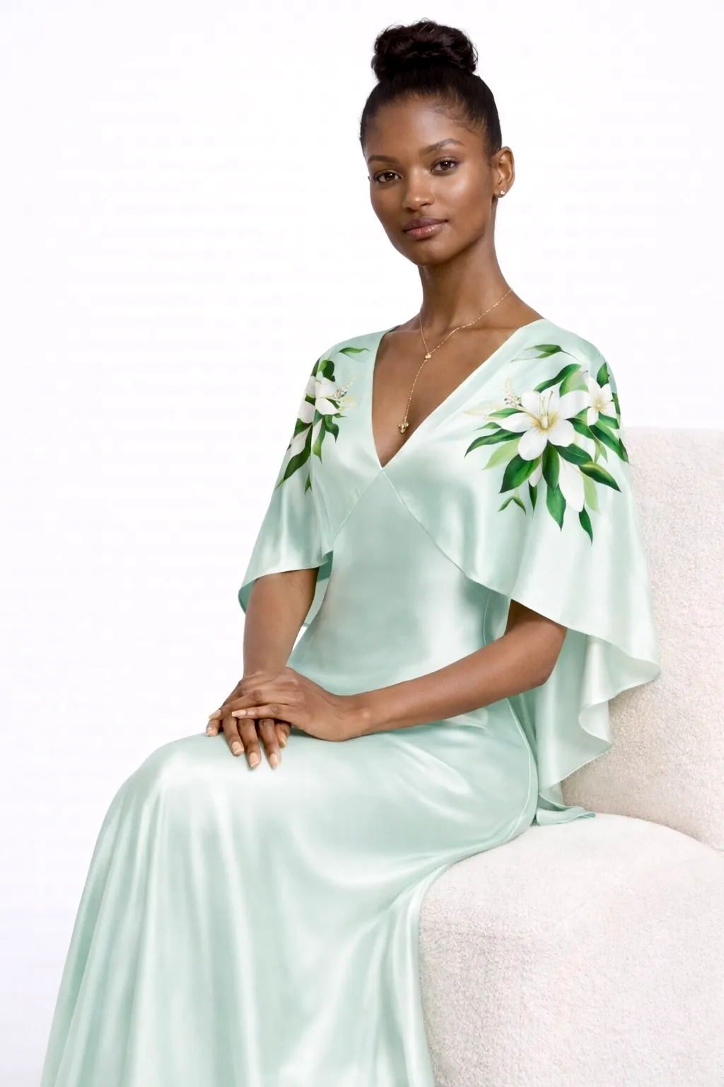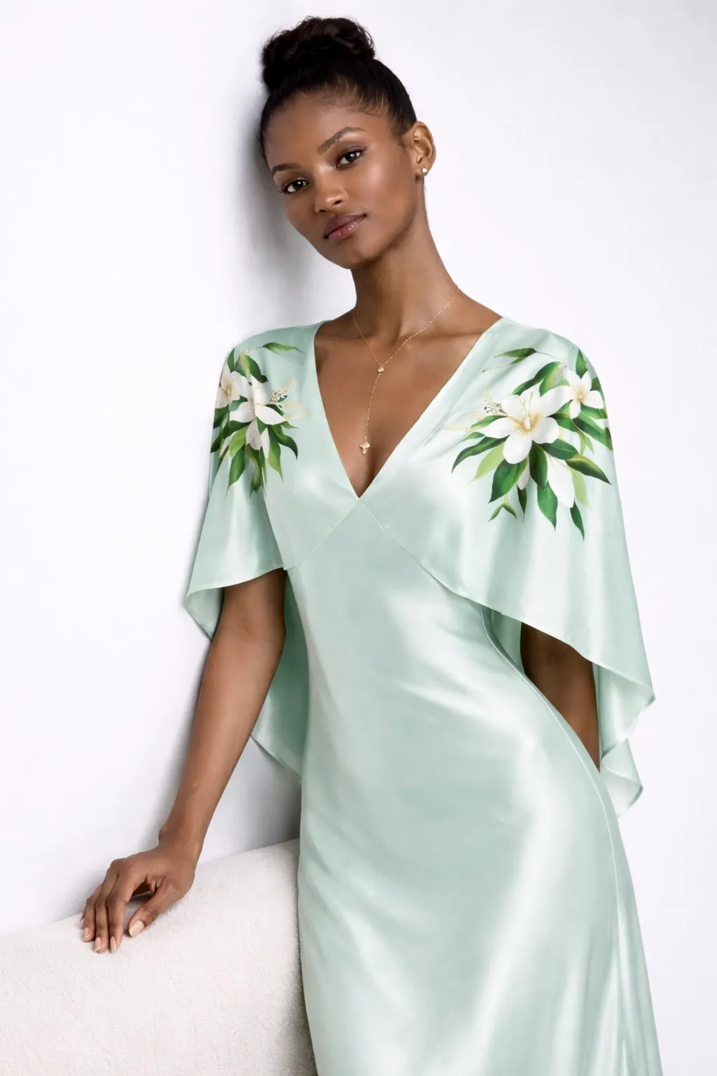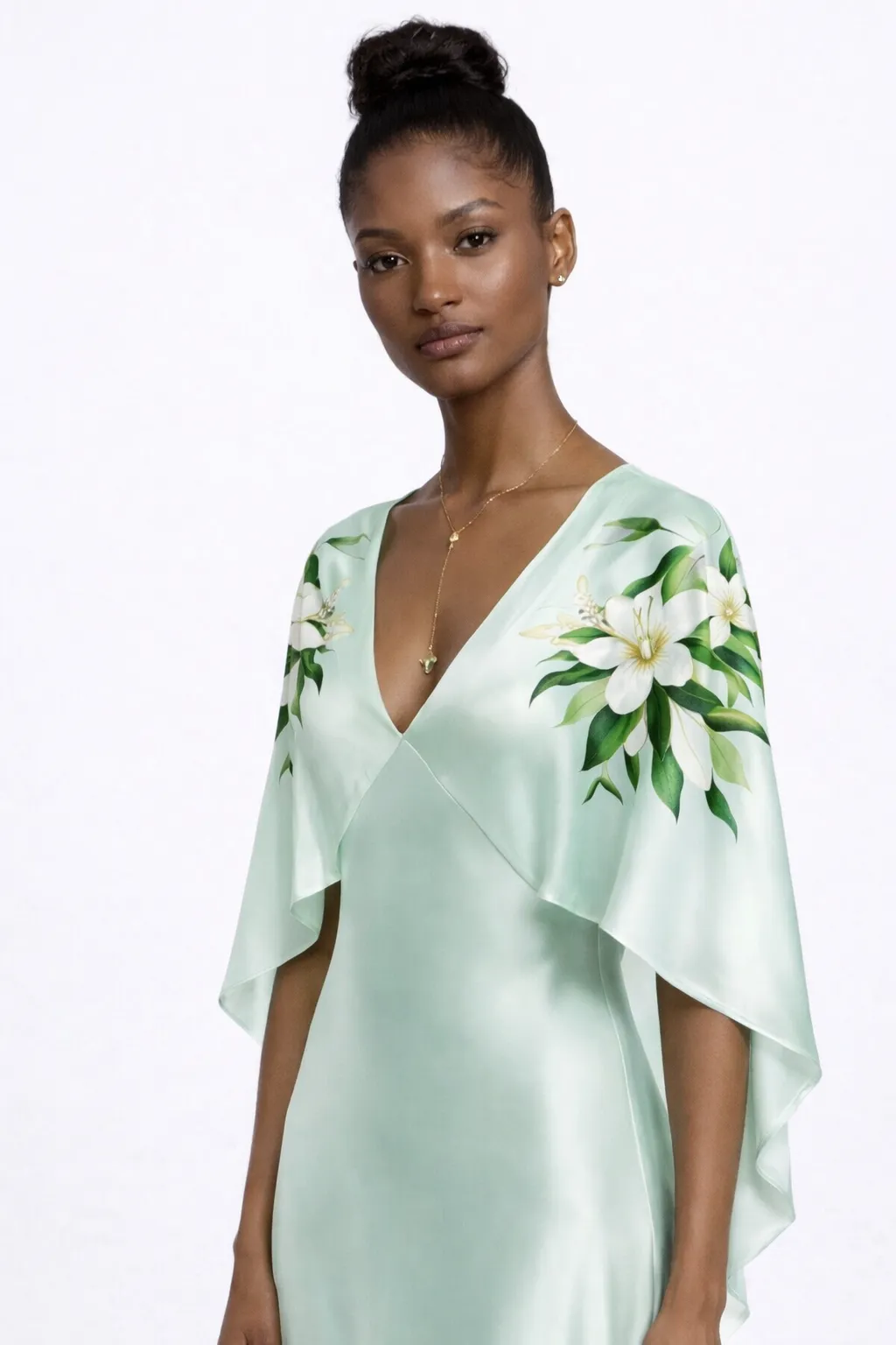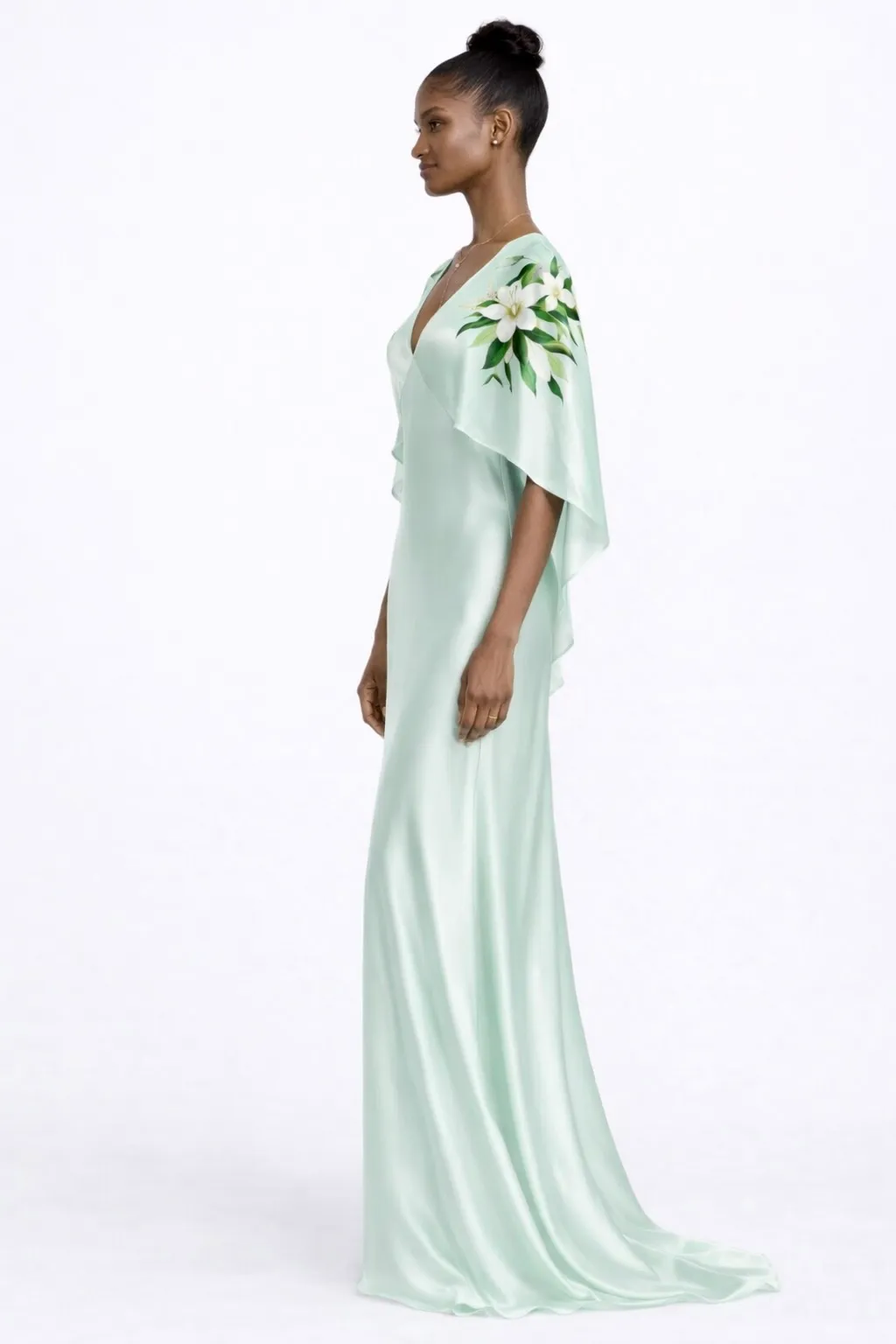 MINT LILY CAPE GOWN – PREMIUM SILK | MUS543