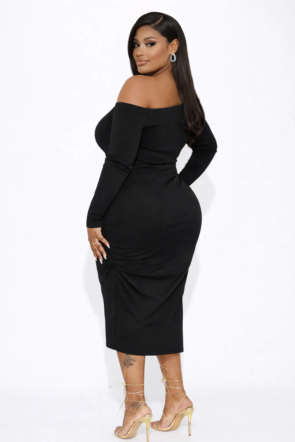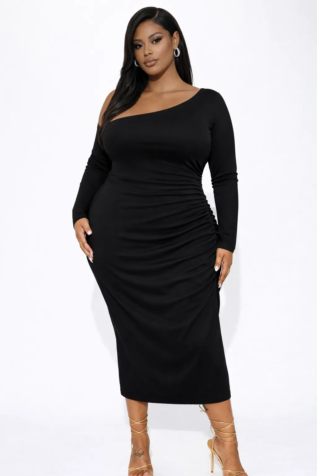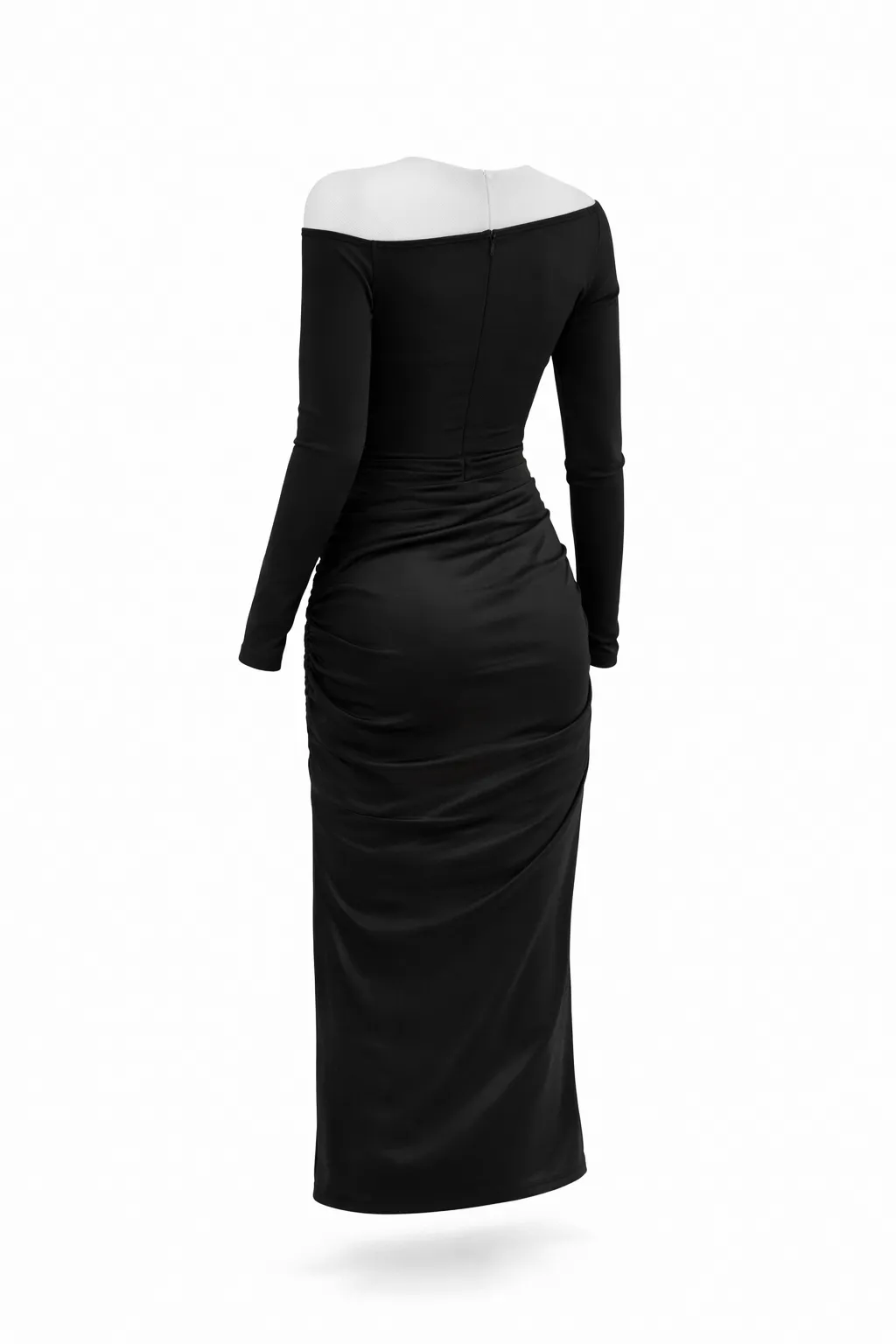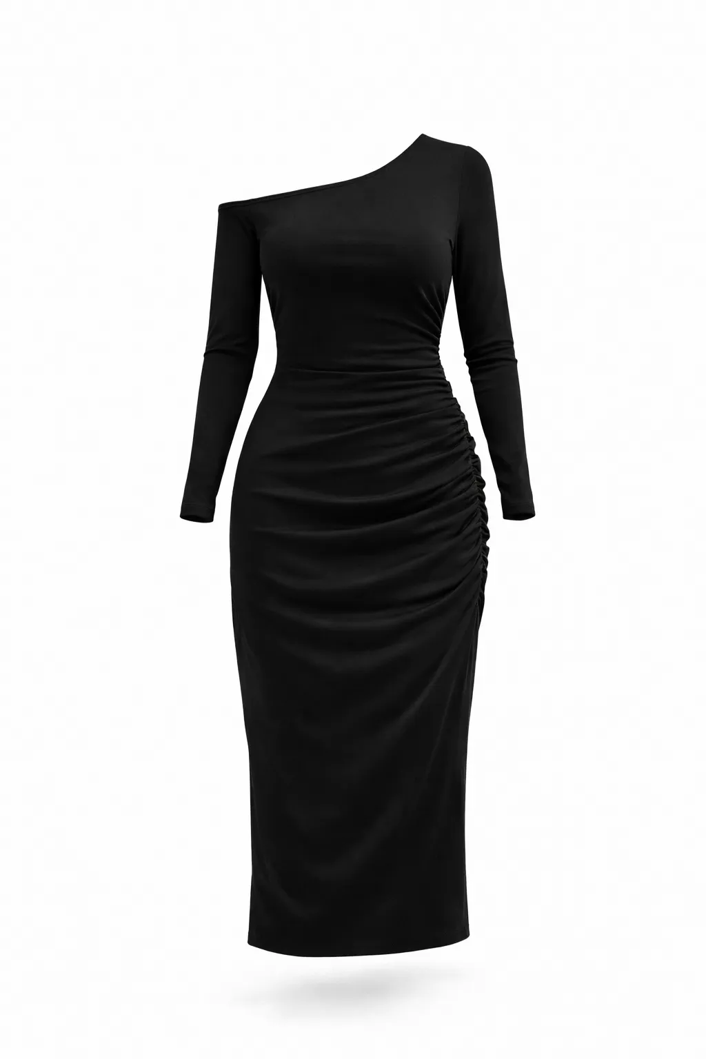 NOIR ASYMMETRICAL RUCHED BODYCON – SEDUCTIVE ELEGANCE | T134