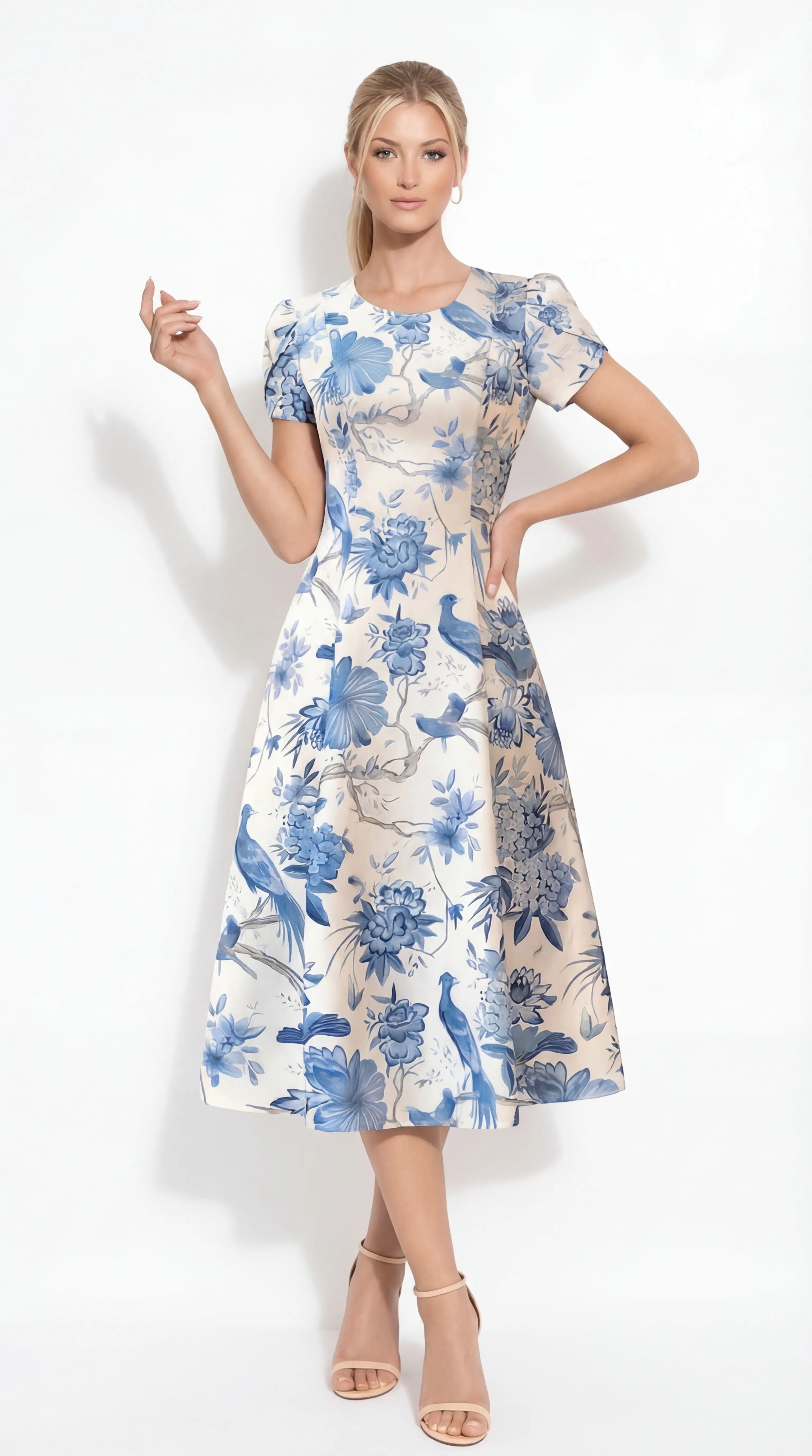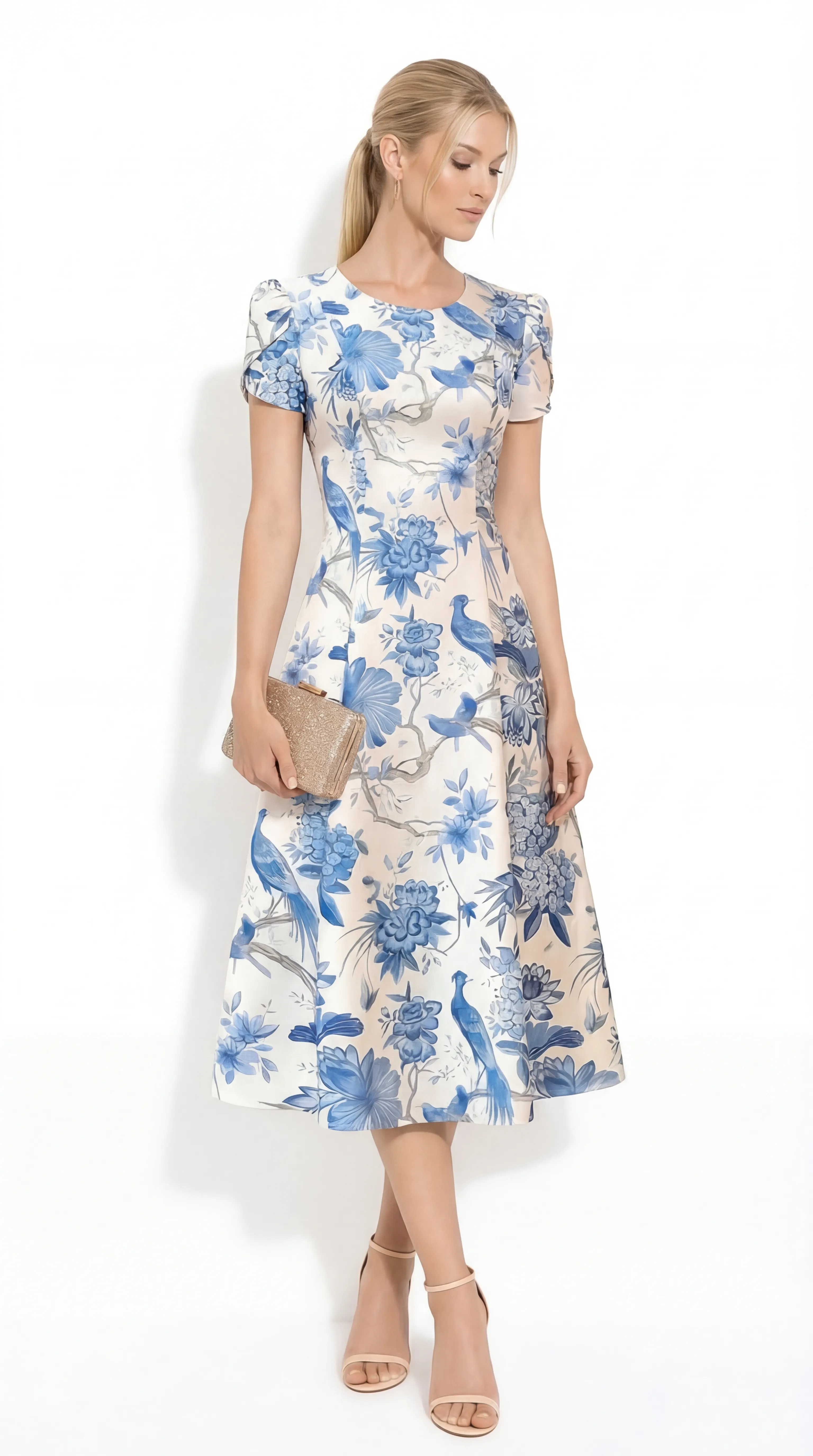 PASTEL BLOSSOM CHÉO MIDI – ELEGANT IVORY & BLUE | MDU4528