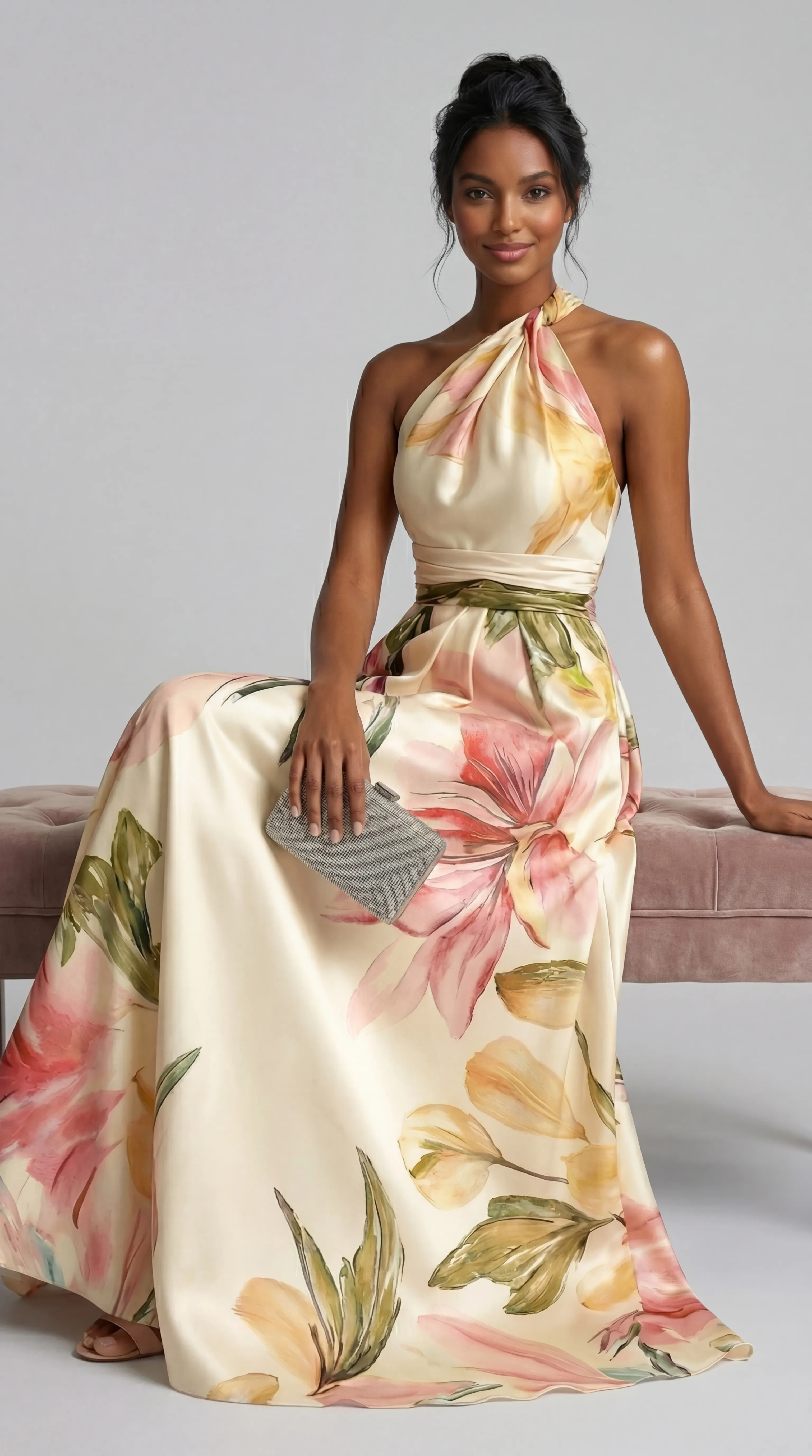 ROSE RADIANCE HALTER GOWN – PREMIUM ELASTIC SILK | MUS551