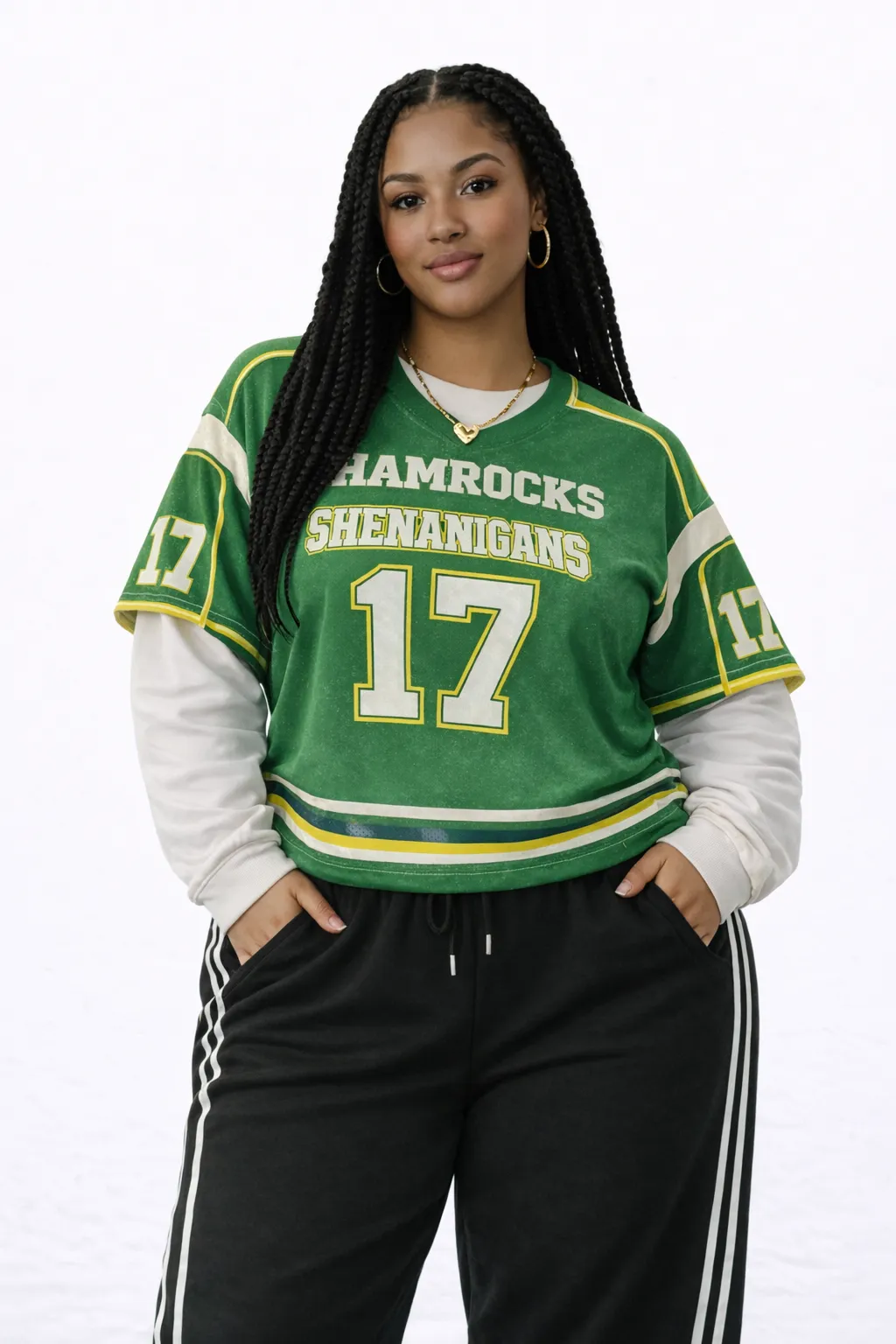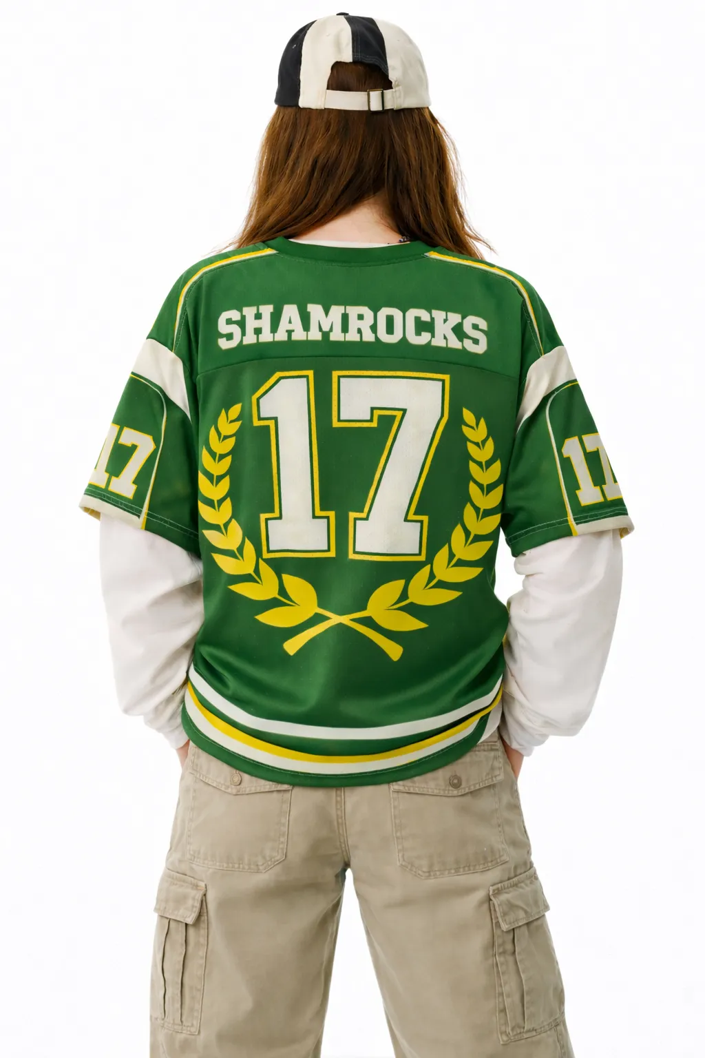 Typography: Showcases "SHAMROCKS SHENANIGANS" text and a bold varsity-style number "17" in a contrasting white and yellow color scheme.