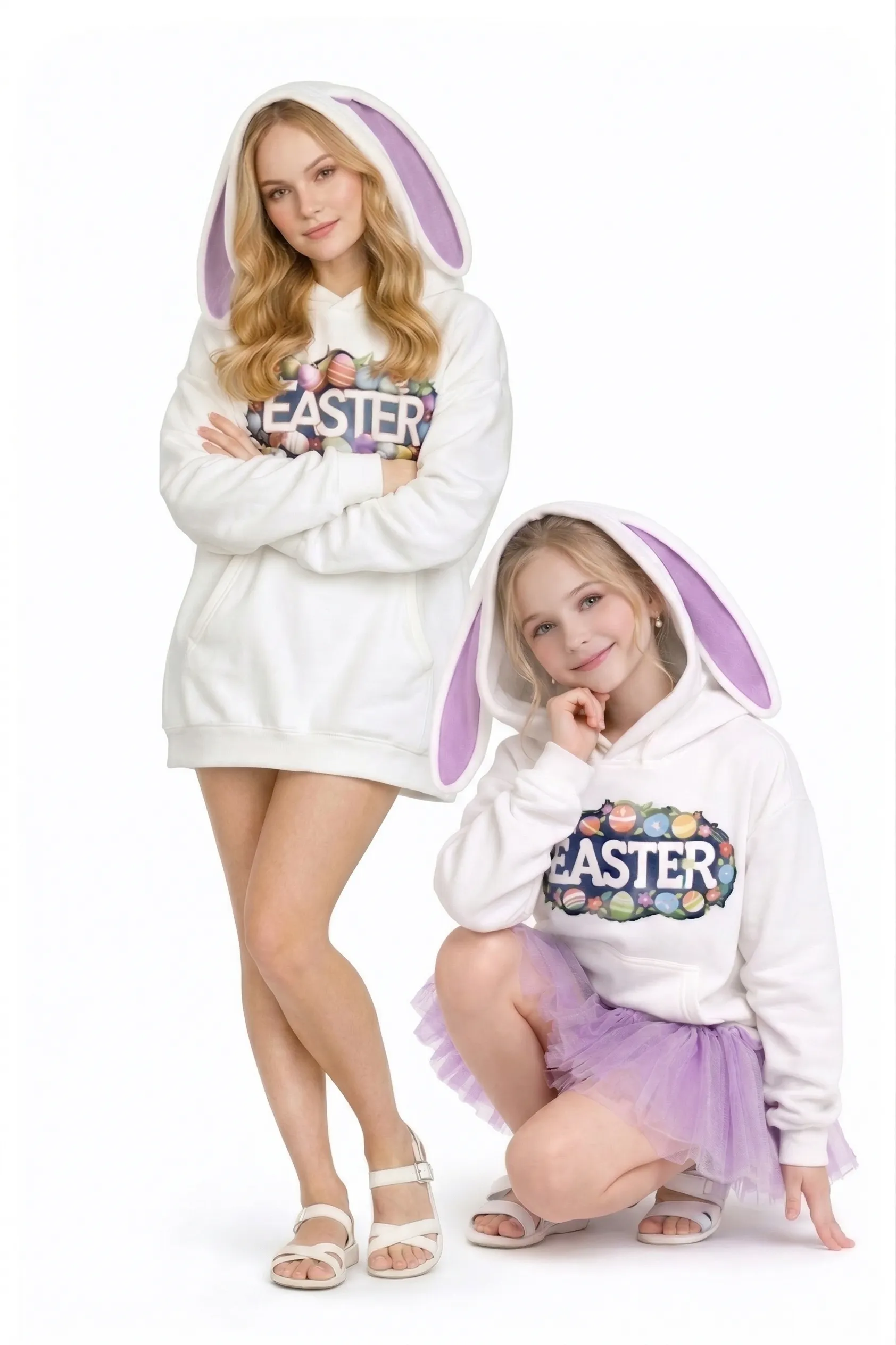 The MUS415 is the ultimate cozy statement piece, combining the superior warmth of dual-face fleece with an adorable 3D bear-ear hood. Featuring a vibrant Easter-themed floral print and a relaxed sky-blue silhouette, this hoodie offers a perfect balance of comfort and playful sophistication.